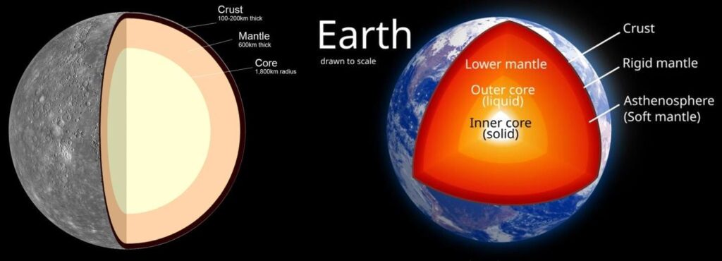 Довгий час вважалося, що ранній Меркурій зазнав удару гігантського астероїда, який зніс більшу частину мантії. Проте модель, розроблена в Інституті фізики Землі та Університеті Париж Сіте, показує інший сценарій. «Удар був ковзним і не надто швидким — під кутом 32,5°», пояснюють автори. У результаті планета втратила до 60% мантії, але зберегла непропорційно велике ядро, яке сьогодні становить близько 70% її маси.