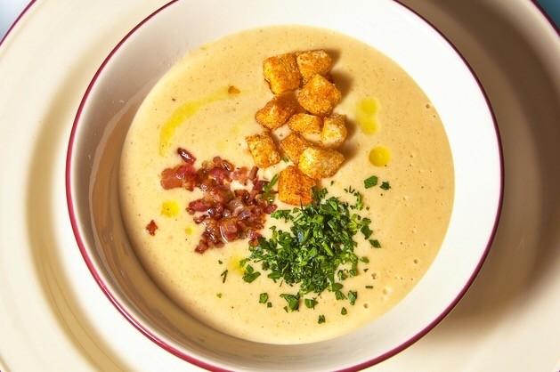 Бекон треба спочатку підсмажити, щоб він хрумтів. А далі на ваш вибір. Його можна додати відразу в суп або в тарілку безпосередньо перед подачею. Важливо використовувати саме бекон, а не окремо сало чи м’ясо. Смачного!