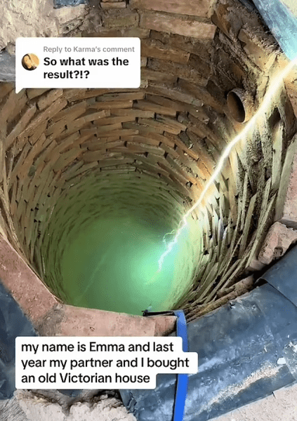 Емма Гаррісон і Ріс Стейнер з Англії були приголомшені, дізнавшись, що в їхньому нещодавно купленому вікторіанському будинку, який вони ремонтують, зберігається таємний скарб — 127-річний колодязь. В одному зі своїх відео в TikTok пара показала, що вони зробили зі своєю знахідкою.