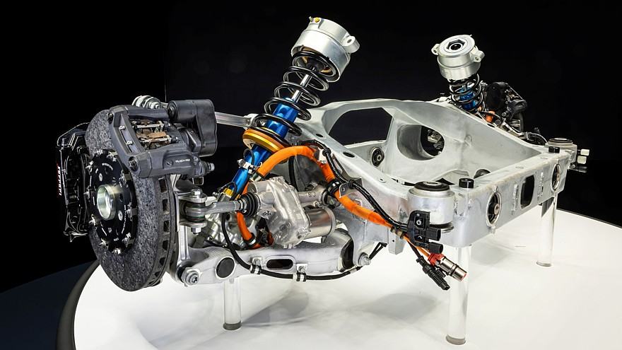 Маса заднього силового модуля в зборі – 129 кг, максимальна сукупна потужність двох його електромоторів – 620 кВт (843 к.с.). Задній силовий модуль є основним, а передній допоміжним, електромотори переднього модуля можуть повністю відключатися від коліс для зниження втрат.