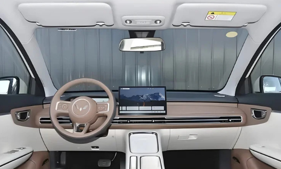 У салоні автомобіля встановили вузьку цифрову панель приладів та 12,8-дюймовий сенсорний екран. Селектор режимів їзди помістили на кермову колонку.