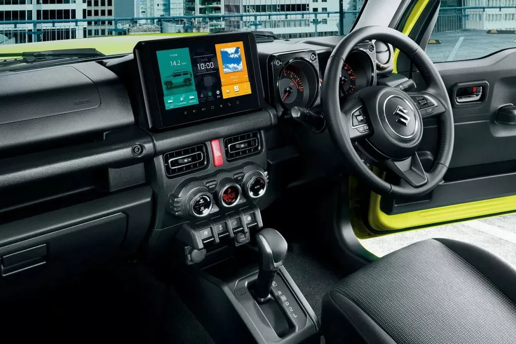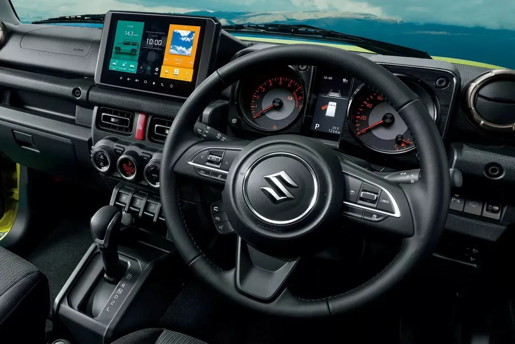 У салоні Jimny з’явилися два приємні оновлення. Приладова панель тепер оснащена 4,2-дюймовим дисплеєм, розташованим між аналоговими циферблатами, що, ймовірно, порадує шанувальників, які віддають перевагу традиційним приладам повністю цифрової системи.