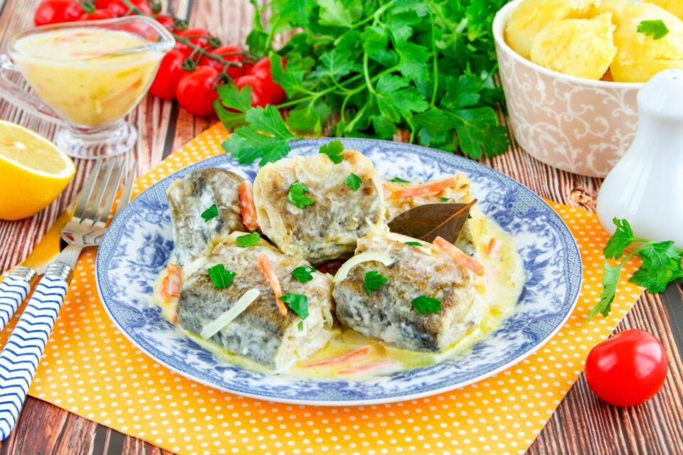 Просто та смачно, для сімейного обіду чи вечері! Хек у сметані з цибулею на сковороді – легка страва для повсякденного меню. Обсмажені шматочки риби тушкують у сметанному соусі, просочуючись ароматом овочів і спецій, риба стає ніжною та смачною. Подавати можна з будь-яким гарніром.