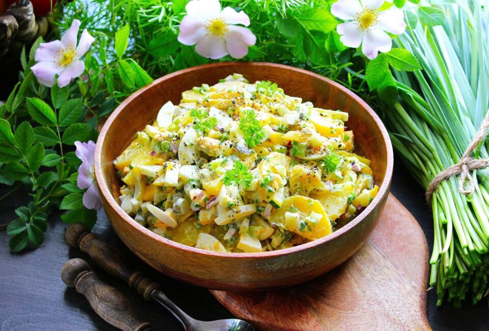 Досить готувати картоплю тільки на гарнір. З нею можна приготувати апетитний салат. В ньому поєднано популярні за смаками продукти. Секрет картопляного салату полягає в заправці.
