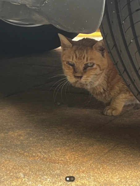 На першому знімку тварина ховалась під машиною. У неї було мало шерсті та рани на мордочці.
