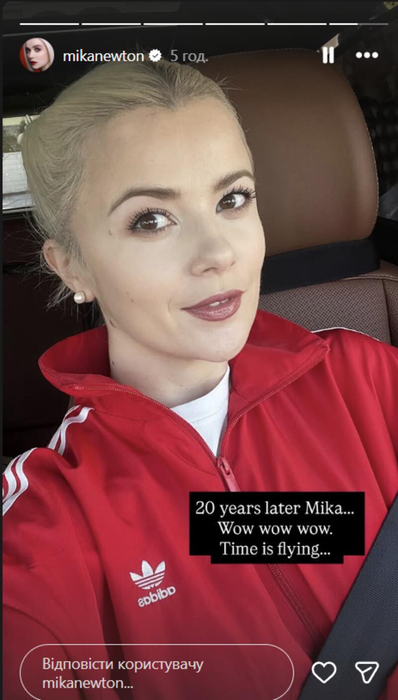 «Крихітка Міка. 20 років потому Міка. Вау вау вау. Час летить»,— підписала Ньютон.