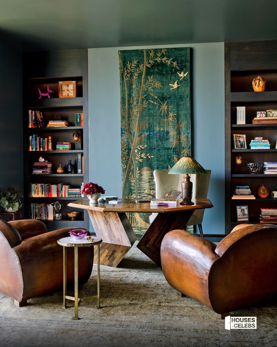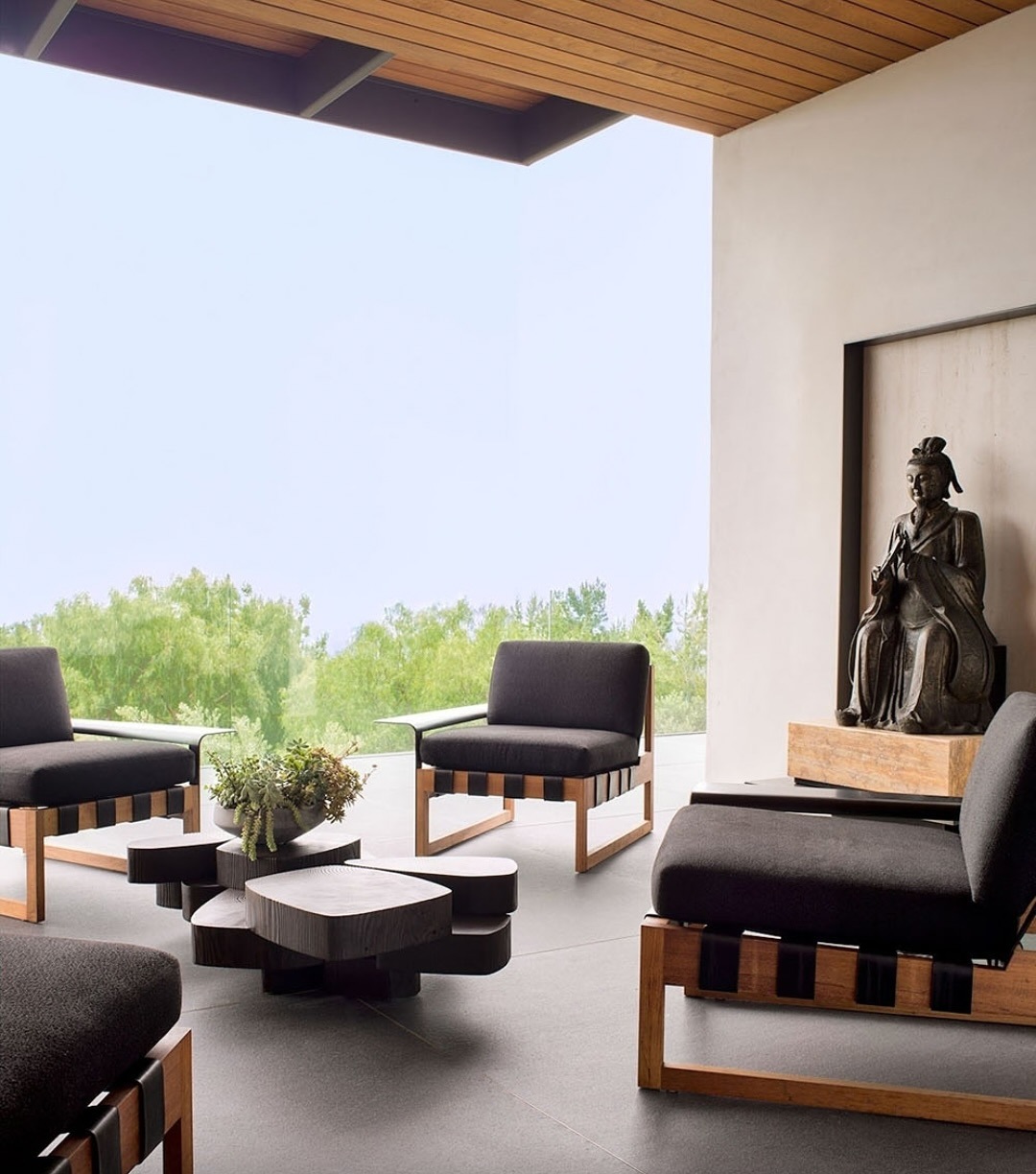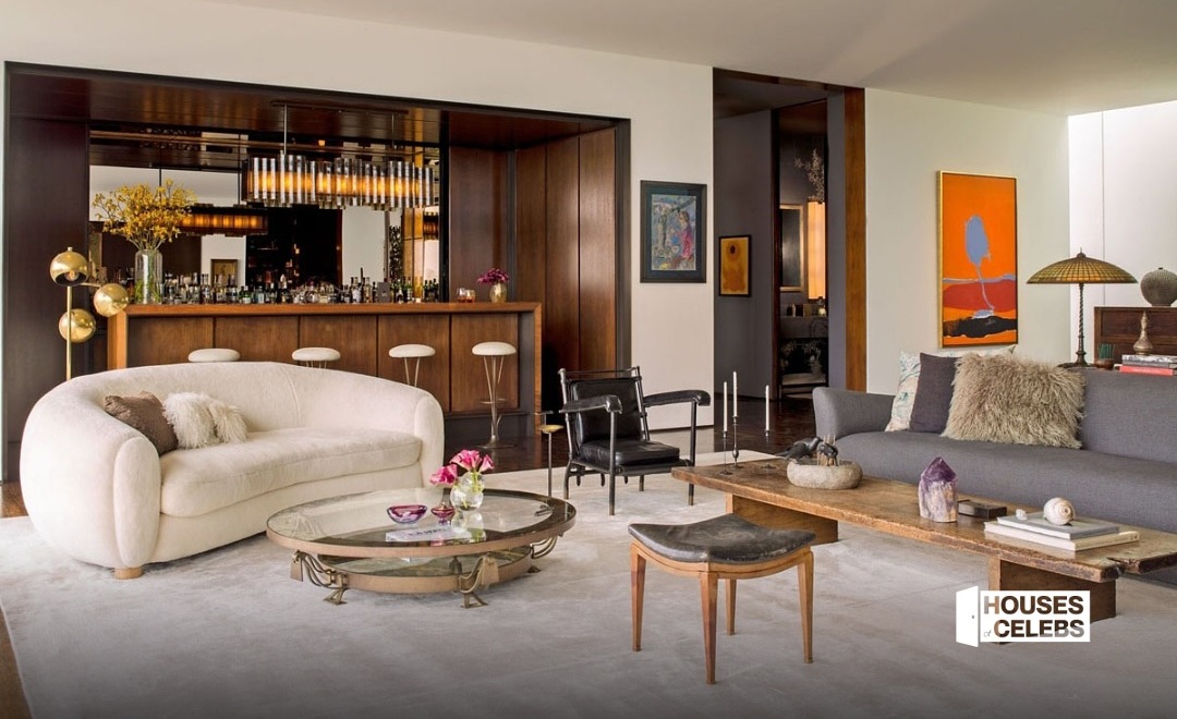 Всередині для створення уюту Еністон співпрацювала з дизайнером Стівеном Шедлі, щоб пом’якшити спочатку ультрамінімалістичну оболонку, додавши шовкові килими, теплі текстури, шпалери з ручним розписом та твори мистецтва, щоб зробити простір привабливим та особистим.