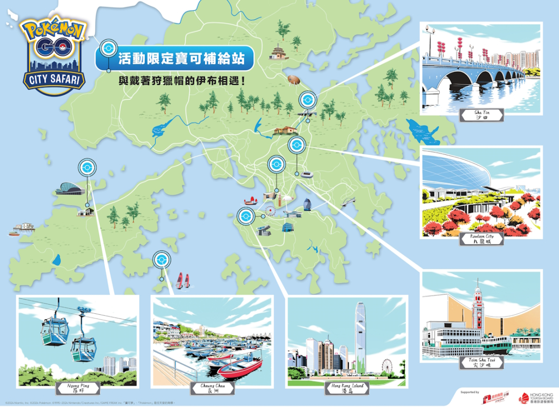 Ловцям належить досліджувати локації Ша Тін, Коулун-Сіті, Цим Ша Цуй, острів Гонконг, Ченг Чау і Нгонг Пінг, заплативши за “основний” квиток 10 доларів. Також можна купувати додаткові квитки, що дають підвищений шанс зустріти блискучих покемонів і отримати приманку для цих істот.