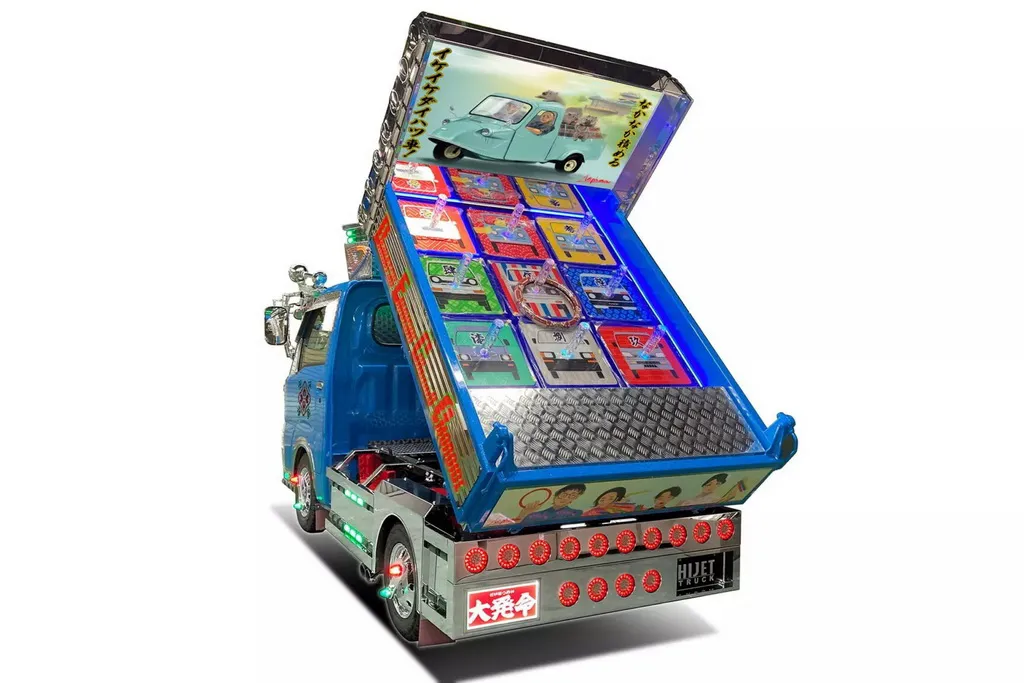 Головним шоустопером стане самоскид-атракціон Hijet Truck Truck PTO Dump Daihatsumei, багато прикрашений хромом, світлодіодними ліхтарями по всьому кузову та яскравими малюнками. Для більшого ефекту задній бампер забезпечили 14 круглими світлодіодними задніми ліхтарями.