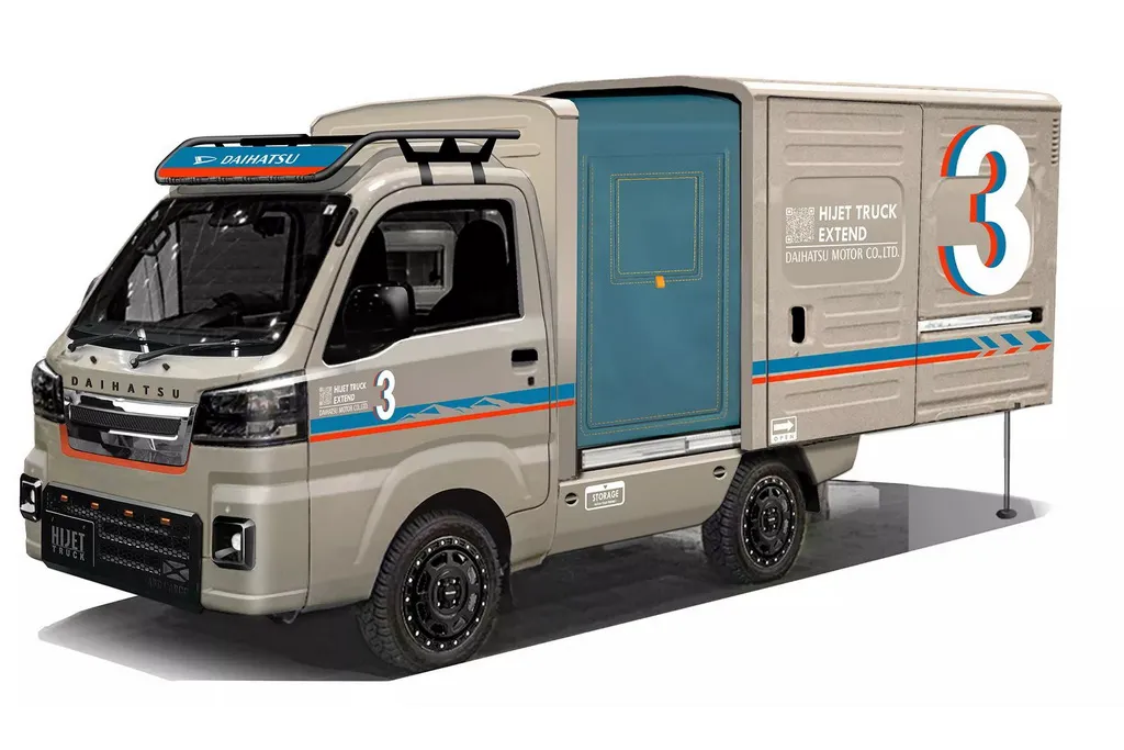 Другий концепт – Hijet Truck Panel Van EXTEND3 – демонструє розширені можливості легкої вантажівки, яку можна перетворити на стоянці на просторий павільйон для різних активностей чи місце для відпочинку.