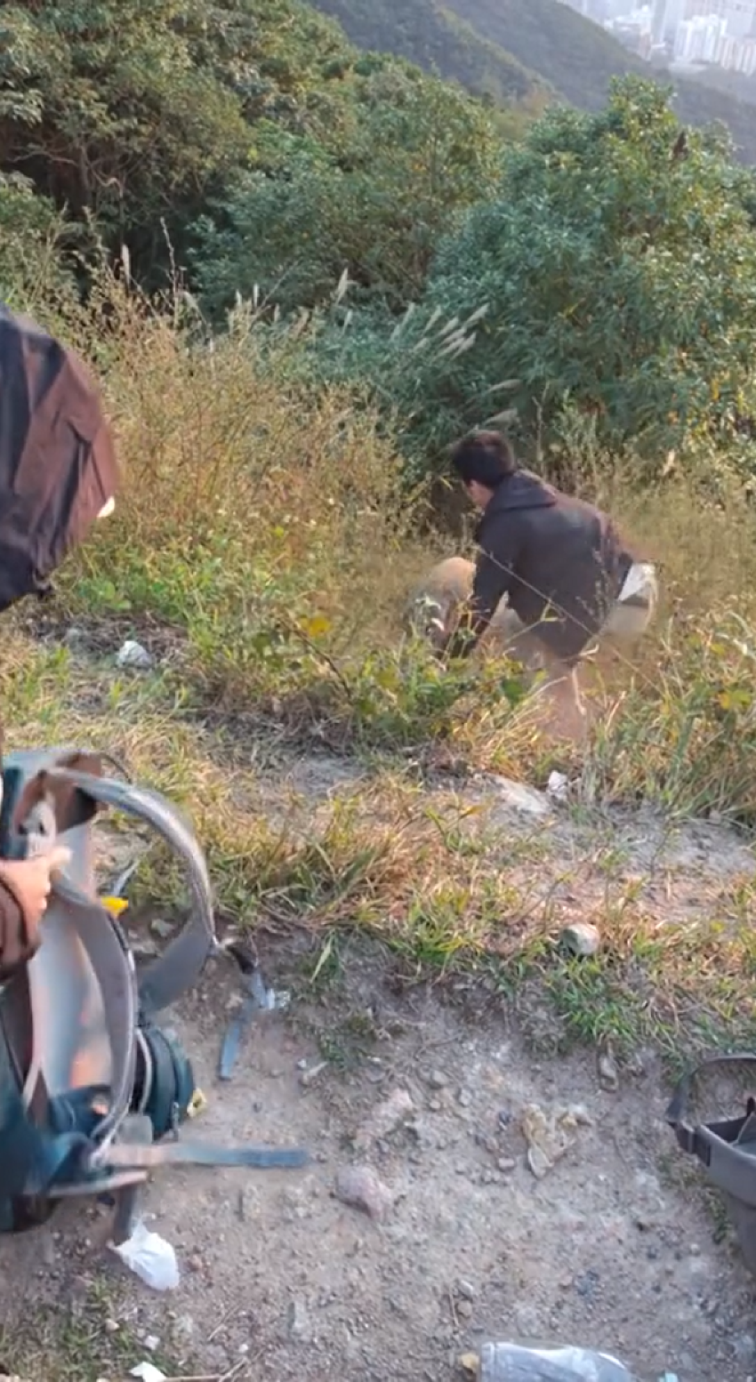 Після того, як кабан поцупив рюкзак, пара кинулася вниз по схилу пагорба, щоб повернути свої речі.