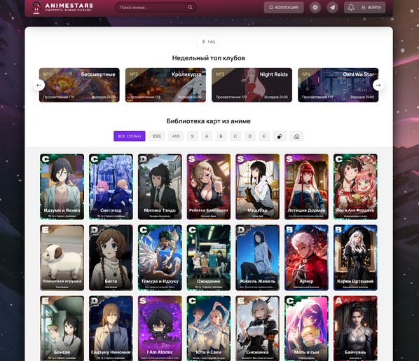 Помимо просмотра, AnimeStars предлагает формат, который хорошо вписывается в неспешный зимний ритм, — коллекционирование цифровых карточек персонажей. В разделе аниме карточки пользователи собирают героев из тех сериалов, которые смотрят на сайте.