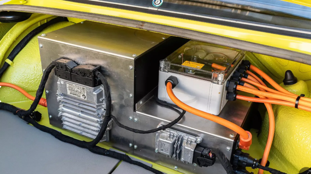 Енергію цієї батареї до коліс передає електродвигун, взятий від Tesla Model S. Двигун видає 178 кінських сил, і все це керується 400-вольтовою електричною системою.