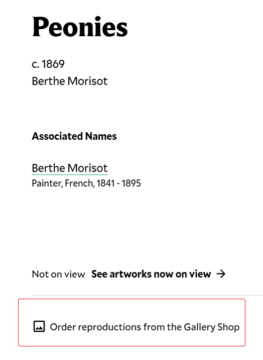 Полотно, на якому зображені ніжні півонії у скляній вазі, ймовірно, є репродукцією роботи відомої французької імпресіоністки Берти Морізо. Вона написана у 1841–1895 роках і зберігається в Національній галереї мистецтв у Вашингтоні.