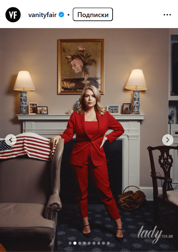 У виданні Vanity Fair вийшов великий матеріал, присвячений другому терміну президентства Трампа, однак багато суперечок у Мережі викликав не так зміст публікацій, як портрет 28-річної прессекретарки Білого дому Керолайн Левітт. Скандальна особа позувала для фото, ймовірно, у своєму кабінеті в Білому домі, оскільки за її спиною на каміні було багато особистих фотографій з сином і чоловіком, але не ці знімки стали зіркою обговорень у соцмережах, а картина, яка висіла над її головою.