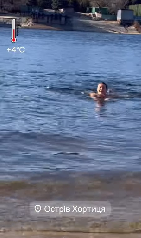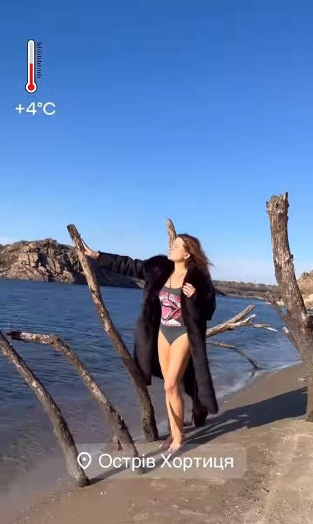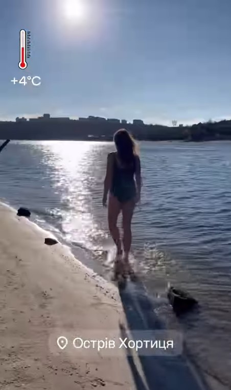 На відео, опублікованому в Instagram, зірка купалася у зимовому Дніпрі. Температура сягала не більше чотирьох градусів.