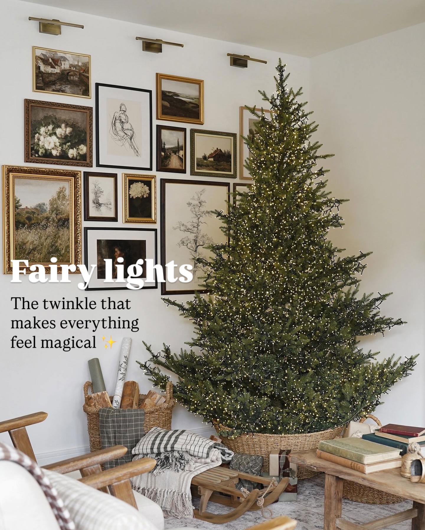 Без іграшок, але багато гірлянди — наче ти у чарівному лісі.