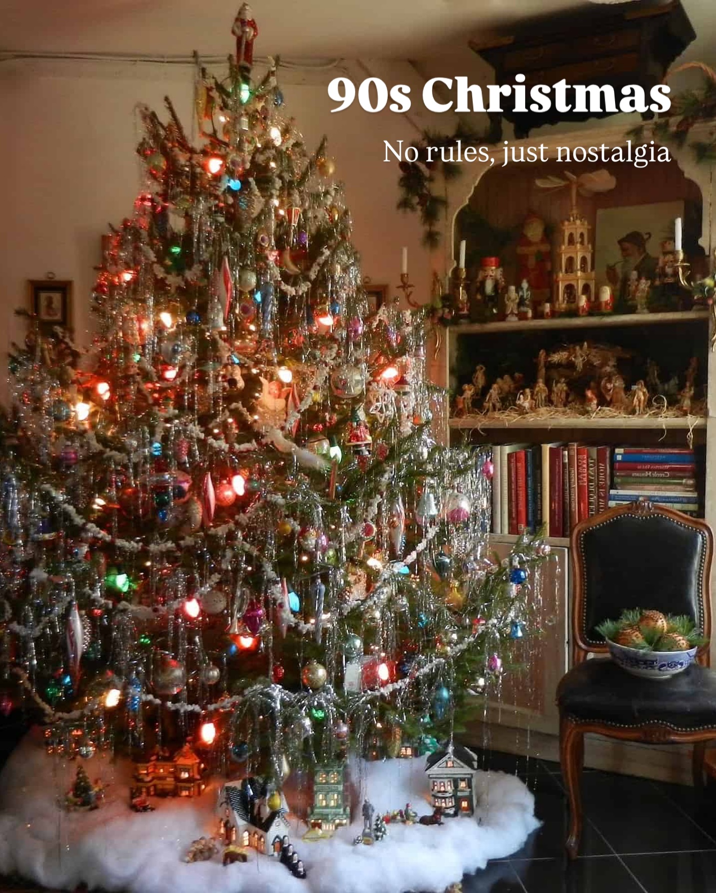 В стилі 90-х — ретро-іграшки, гірлянди, сніжок та фігурки.