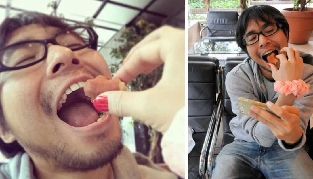 На серії зображень, що циркулюють у мережі, Джинуші, здається, з любов’ю годує подруга з яскраво-червоними нігтями, але насправді “подруга” — це всього лише його права рука.