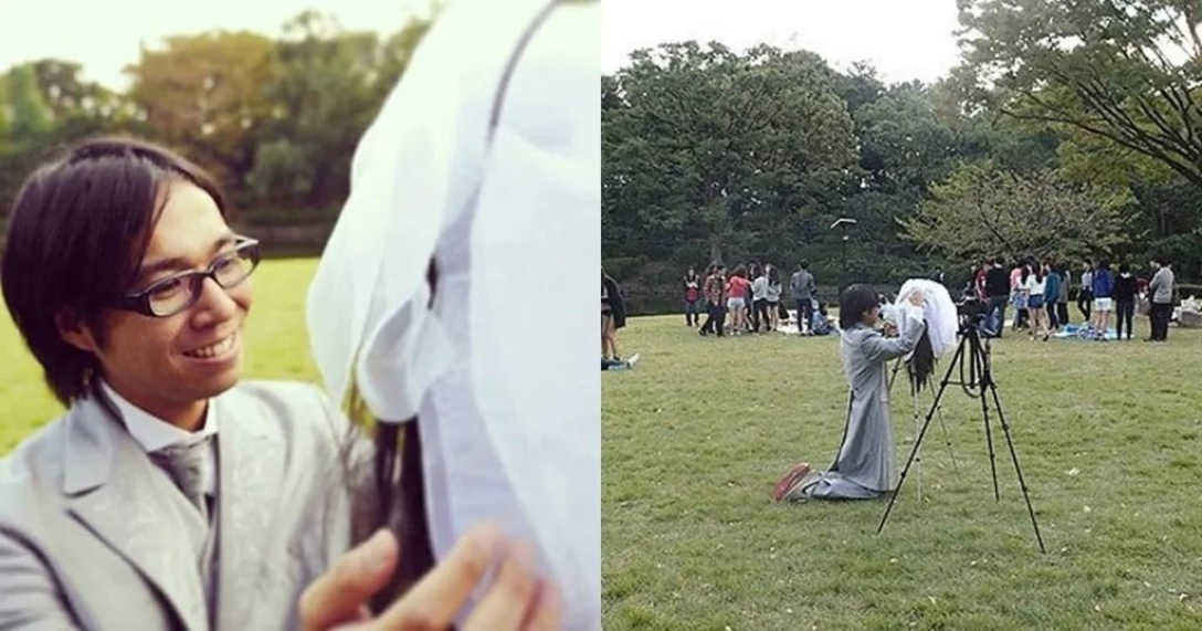 “Я подорожував і зробив фото зі статуєю жінки, і тоді мені спало на думку, що я можу сам створювати радісні фотографії пар”, — поділився він з японською газетою Nishinippon Shimbun.
