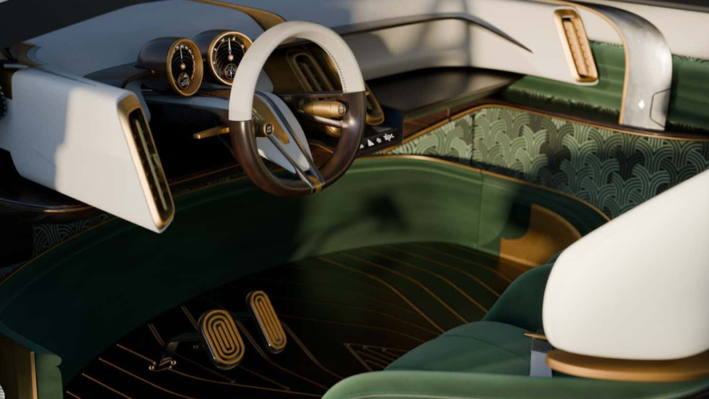 Кузов у стилі ар-деко приховує сучасну силову установку: на кожному колесі встановлено окремий електродвигун. Їхня сумарна потужність досягає 1000 к.с.