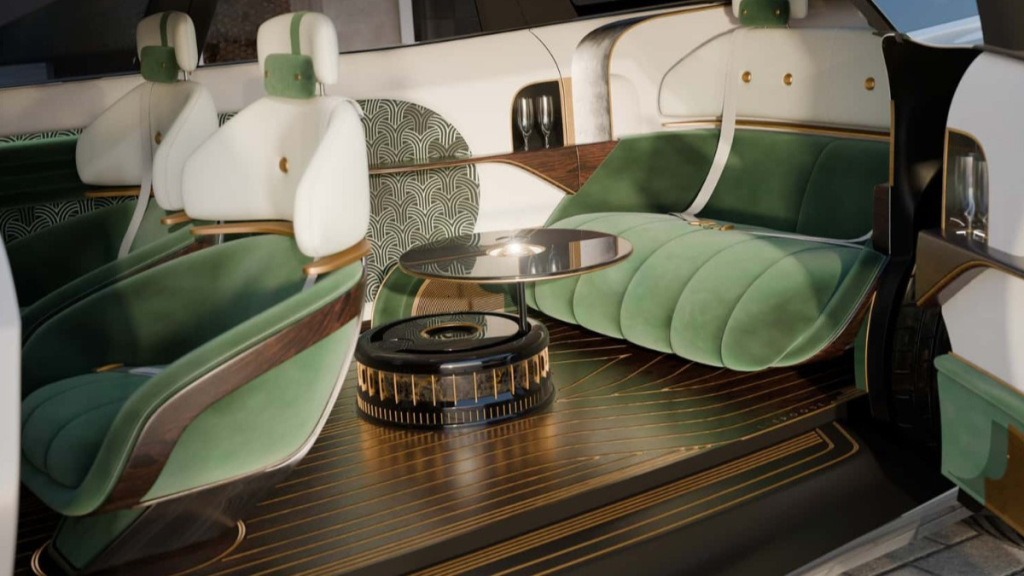 При відкритті дверей фрагменти даху піднімаються. Задня половина салону оформлена в дусі вітальні з великим диваном, складними сидіннями та шафкою по центру, а дисплеї виконані прихованими та висуваються за потреби.