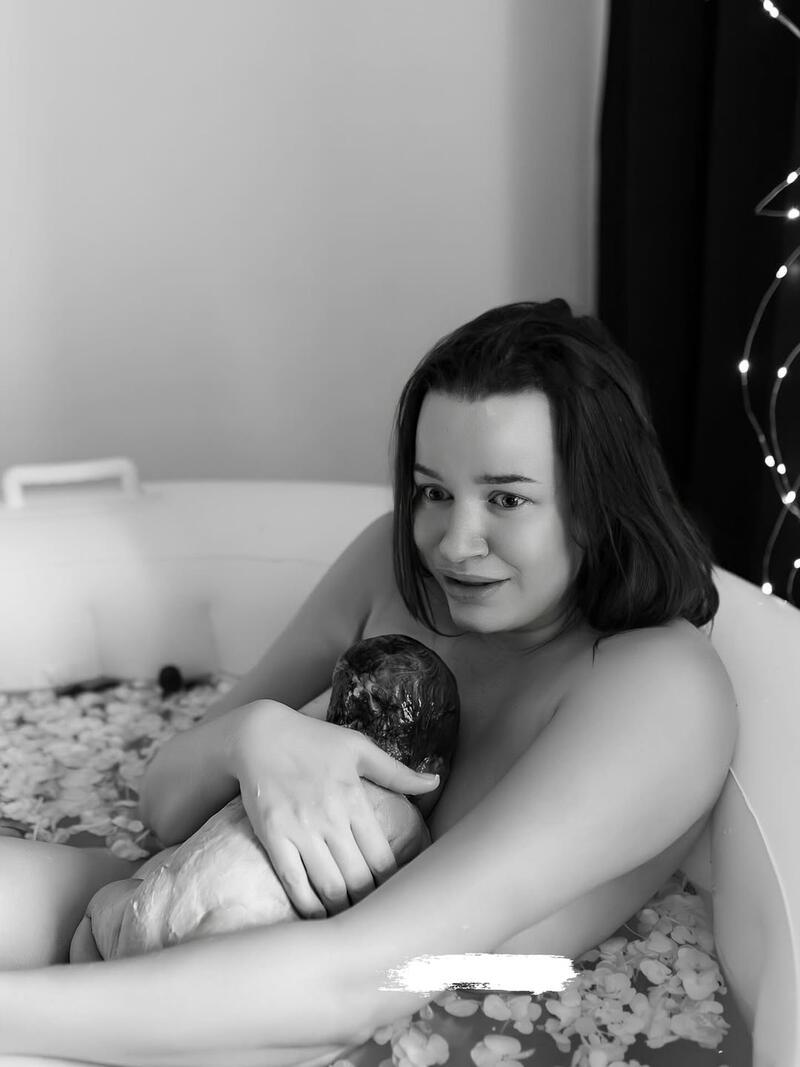 У спільному дописі в інстаграмі пара, яка чотири роки тому перемогла у третьому сезоні шоу «Екси», поділилася чорно-білими кадрами з пологів. Судячи зі знімків, Альона прийняла рішення народжувати у домашній обстановці у спеціальній ванні. На одному з фото вона позувала оголеною, тримаючи на руках дитину. Пара поки тримає у таємниці стать та ім’я малюка.