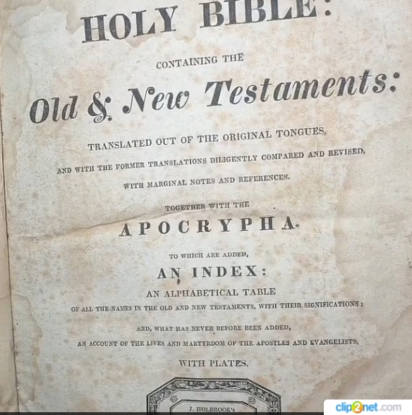 У центрі уваги — Біблія 1818 року, що містить Старий і Новий Заповіт разом із Апокрифами — давніми текстами, чия канонічність досі викликає дискусії.