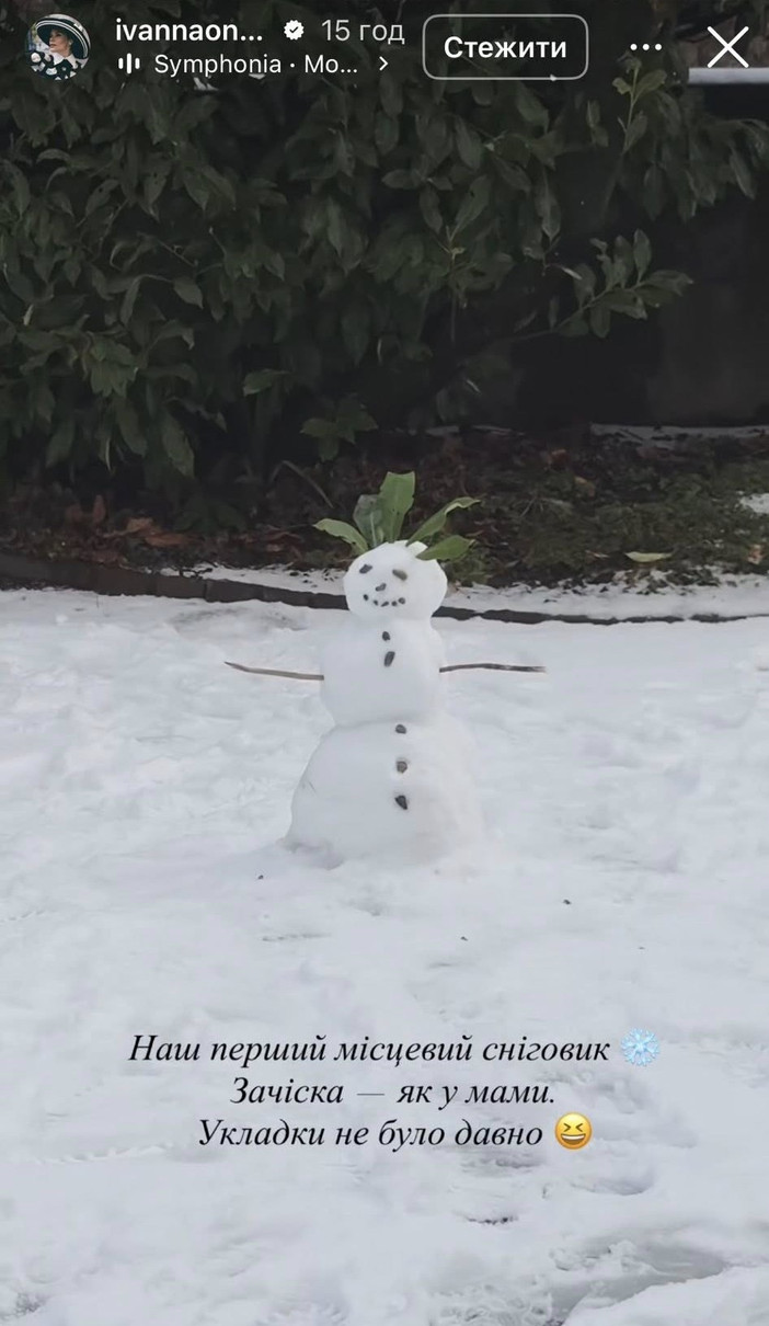 «Не пам’ятаю, коли востаннє ліпила снігову бабу. Певно, ще у дитинстві. Сину сподобалося», — поділилася вона.