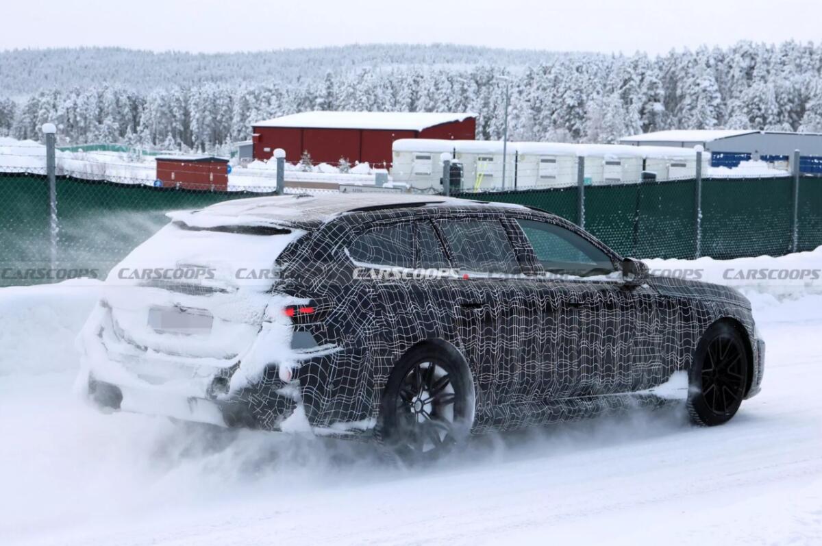 Попередні прототипи натякали на решітку радіатора та фари, схожі на BMW i3 та iX3, проте новий універсал виглядає більш еволюційно. В маскуванні видно два вирізи для “нирок”, новий центральний впускний отвір і великий нижній отвір, який повторює елементи попередньої моделі, але з оновленою центральною опорою. Задня частина автомобіля поки ефективно замаскована снігом, однак очікується, що зміни будуть невеликими – з новим бампером і дифузором.