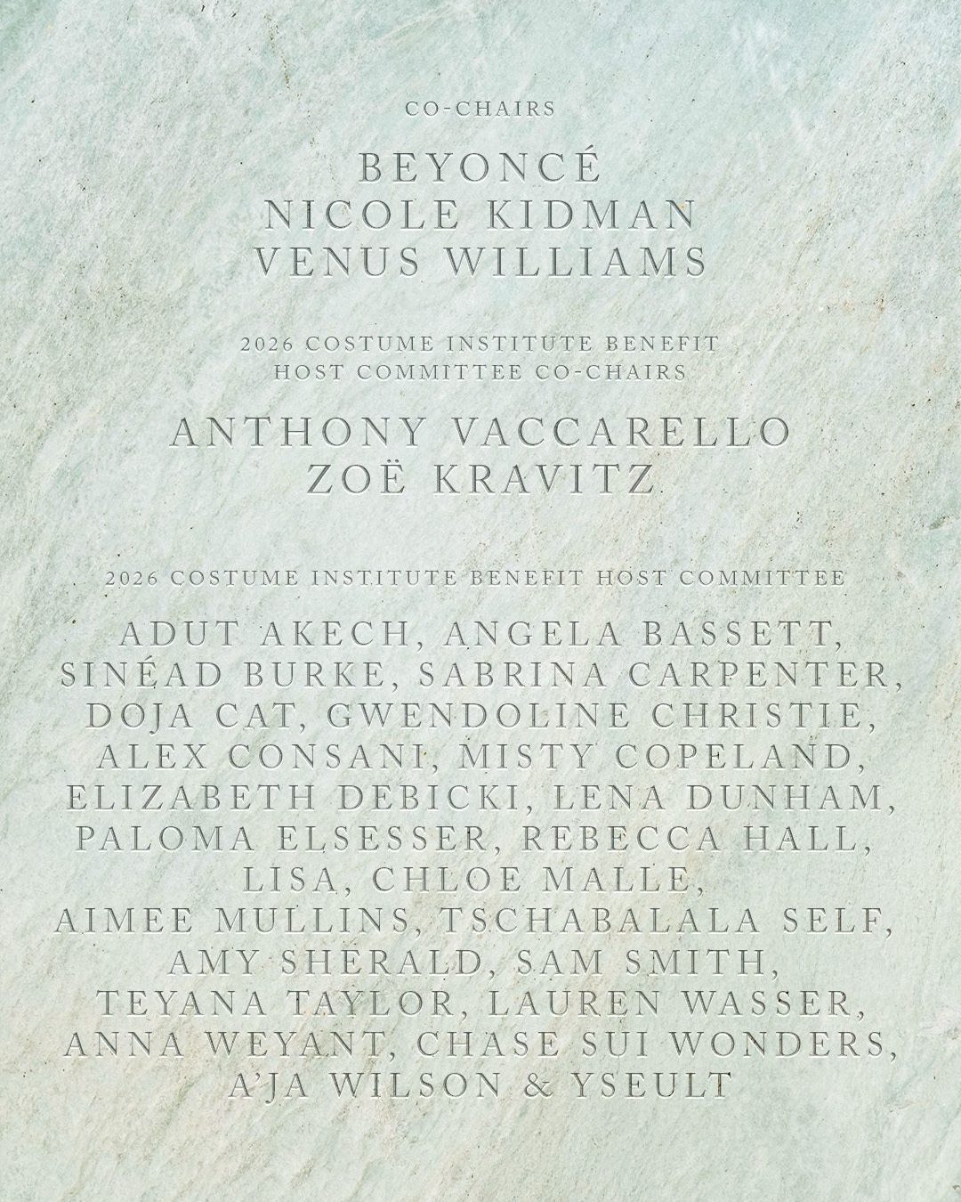 Відомо, що подію точно відвідають Бейонсе, Ніколь Кідман, Вінус Вільямс, Зоі Кравіц та Ваккарелло, які є со-хостами майбутньої події.