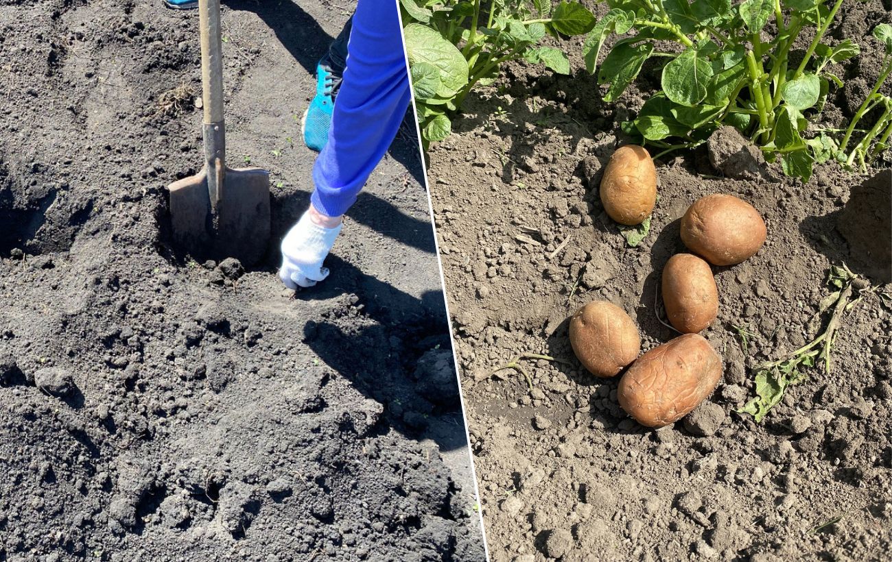 Бульби викладайте зрізом донизу та засипайте шаром землі товщиною 8–10 сантиметрів. Відстань між кущами має бути не меншою за 35 сантиметрів, щоб рослини мали достатньо простору для розвитку.