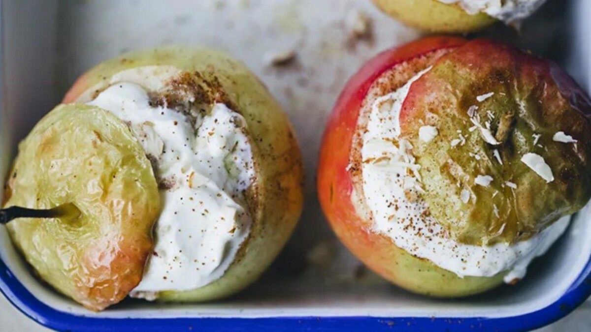 Як запекти яблука з кисломолочним сиром?
