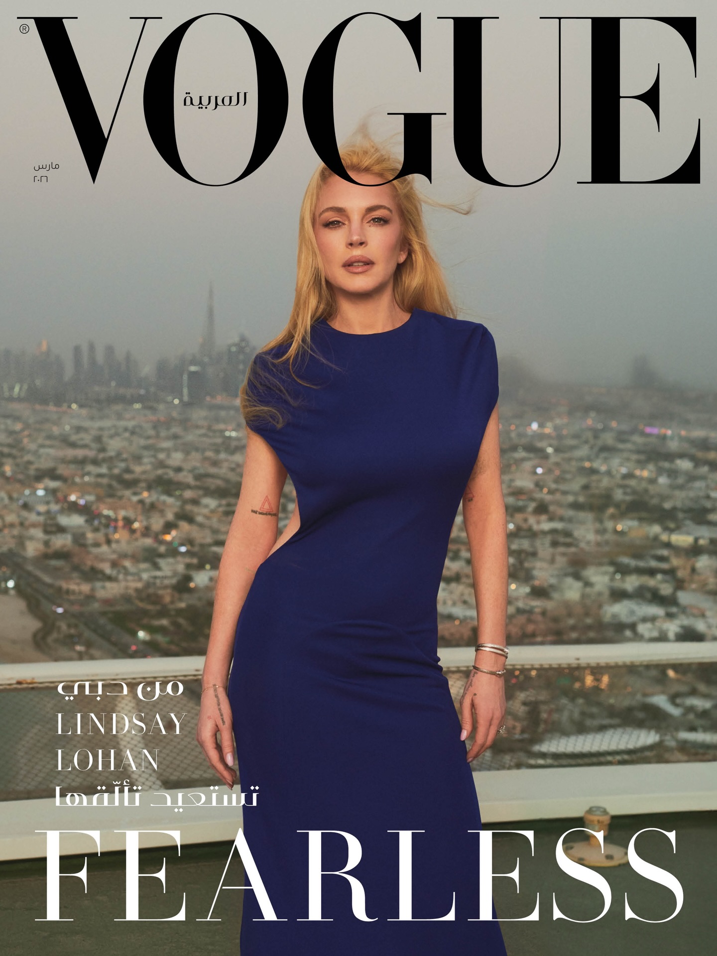 Відома американська акторка Ліндсі Лохан, яка після одруження проживає в Дубаї, стала зіркою обкладинки Vogue Arabia за березень 2026 року, присвяченій дев’ятій річниці видання.