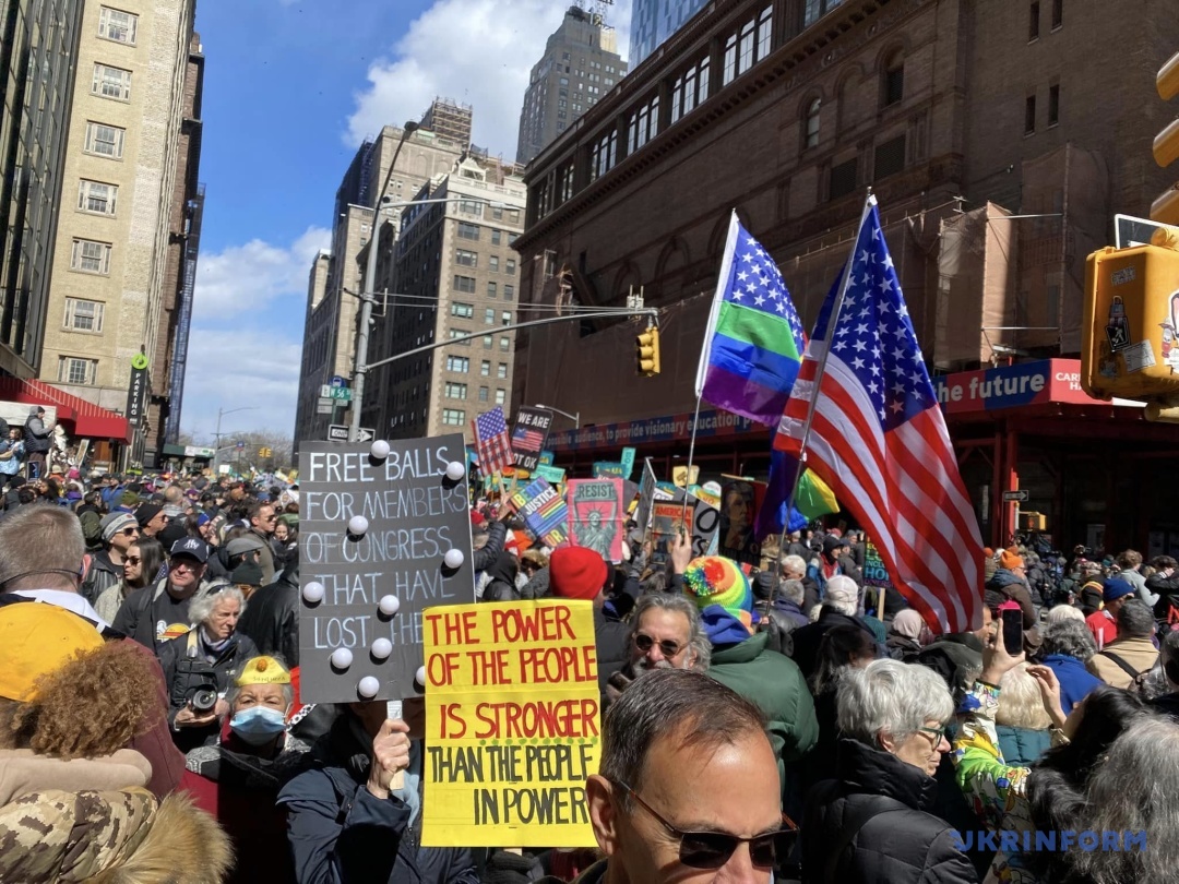 Великі натовпи зібралися в різних районах міста, найбільший – у центрі. Сотні тисяч людей з плакатами пройшли маршем від Центрального парку до Тайм-Сквер.
