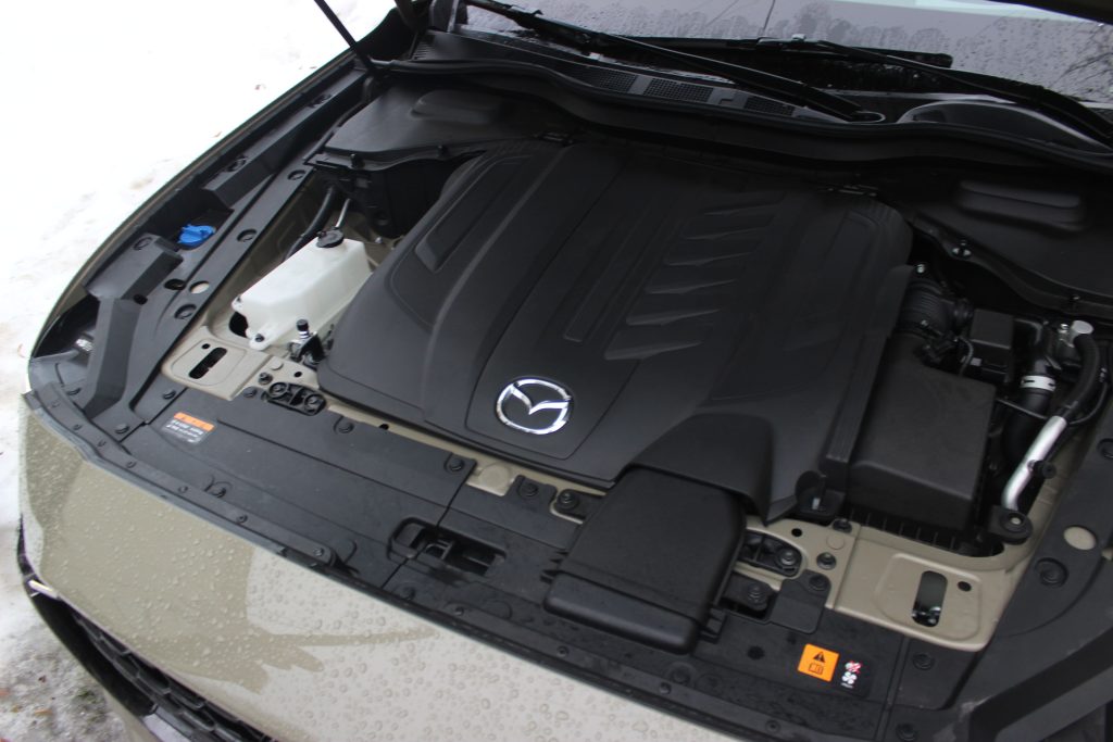 Тестовий кросовер укомплектований 3,3-літровим турбованим V6 потужністю 284 к.с. Додатково працює м’яка гібридна система, яка забезпечує ще 17 к.с. і 153 Нм крутного моменту. Тягову батарею невеликої ємності – 0,33 кВт*год – розмістили під сидінням водія. Її ресурсу замало для повноцінного руху виключно на електротязі навіть на кілька кілометрів, зате вона ефективно допомагає бензиновому двигуну під час стартів і різких прискорень.