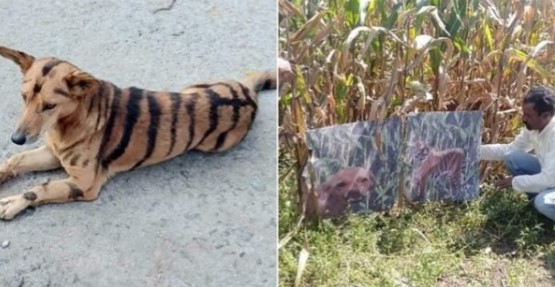 Фермер намалював на шкурі пса характерні чорні смужки тигрини безпечною фарбою для волосся, яка може протриматися місяць. Гоуда також розмістив на полі постери із зображенням своєї «тигроособи», а також справжніх тигрів.