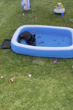 Але ці жителі Коннектикуту (США), які налили воду в басейн для своїх дітей, не очікували, що розвага приверне увагу незвичайного і вже точно непроханого гостя. Ведмідь, якого ніхто не кликав, з’явився викупатися.