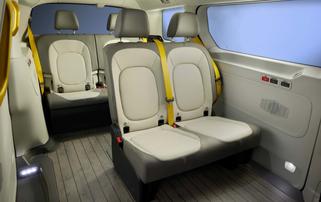 Усередині фургона є чотири пасажирські сидіння та багажна полиця там, де раніше було переднє пасажирське сидіння. Також є місце для водія, але, як стверджує Volkswagen Group, воно, ймовірно, залишиться порожнім, як тільки повністю безпілотні поїздки стануть доступними.