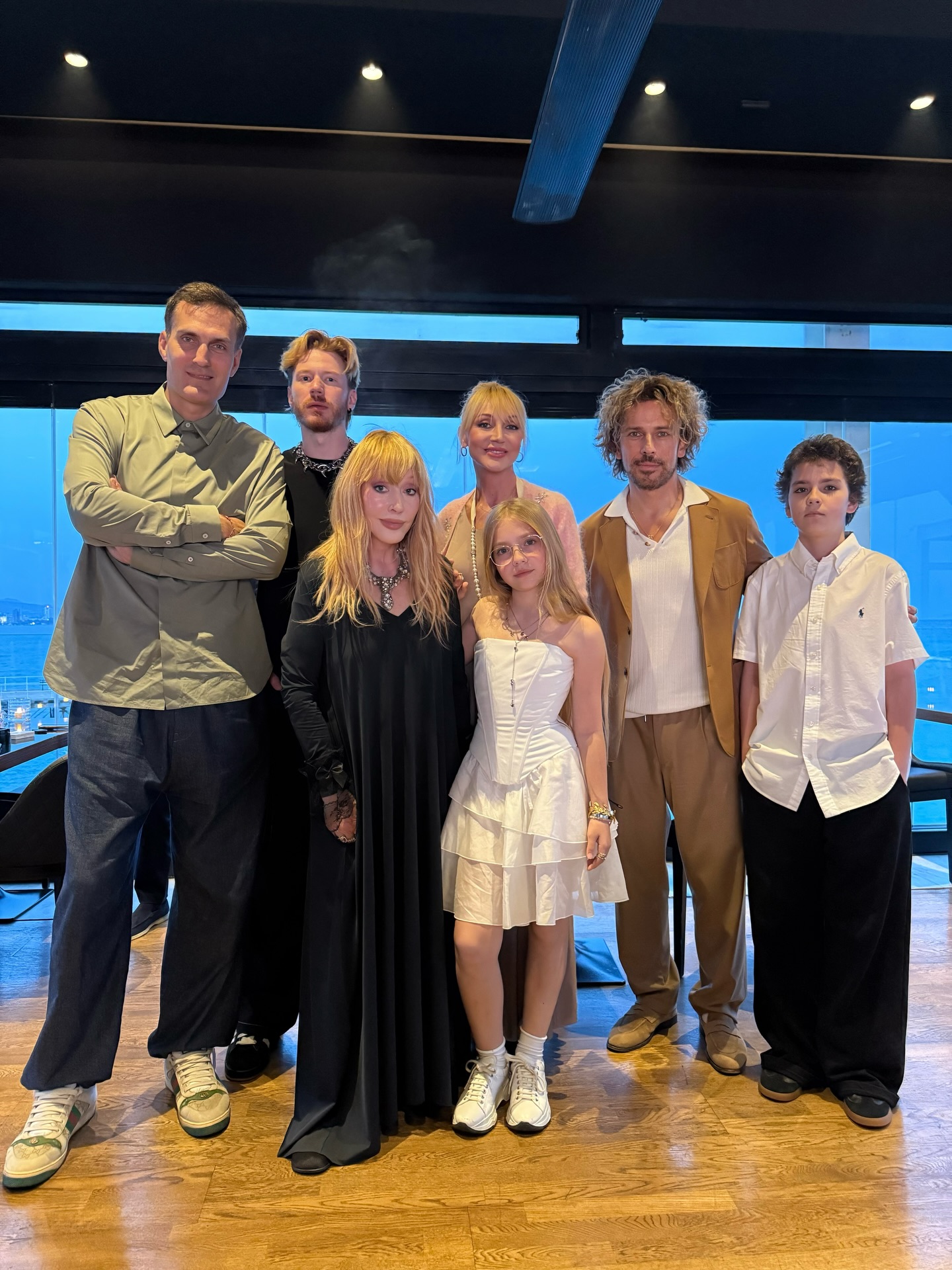 На іншому фото можна побачити іменинницю у ресторані Лімасолу разом з чоловіком, двійнятами Лізою та Гаррі. На фото також можна побачити її старшу доньку Христину Орбакайте з чоловіком бізнесменом Михайло Земцовим та сином від першого шлюбу Микитою Пресняковим. Єдиної, кого не вистачає, це онучки зірки — 14-річної Клавдії.